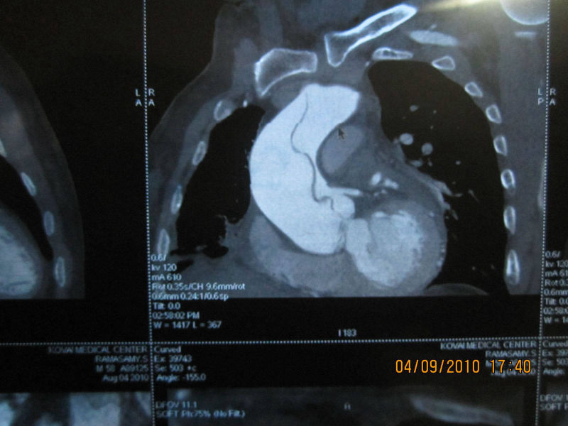 A 58 year old patient who had renal transplant 25 years earlier developed Aortic Dissection and Coronary Artery disease. He underwent successful Bentall's operation (replacement of aortic valve and ascending aorta and reimplantation of coronary arteries) with CABG (3 grafts). He did not require renal dialysis throughout his stay in the hospital and was discharged with normal renal function.